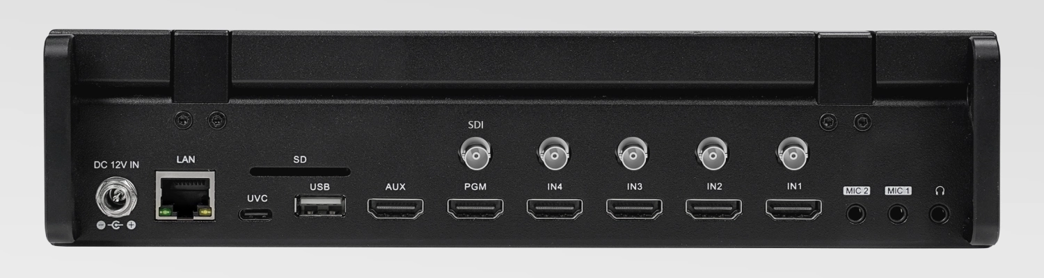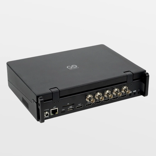 Compatível com os protocolos NDI, SRT e RTMP, ampliando as opções de integração e transmissão. Além disso, conta com interface de entrada de áudio para monitoramento, permitindo o acompanhamento em tempo real de qualquer canal de áudio, garantindo total controle e precisão durante a produção.
